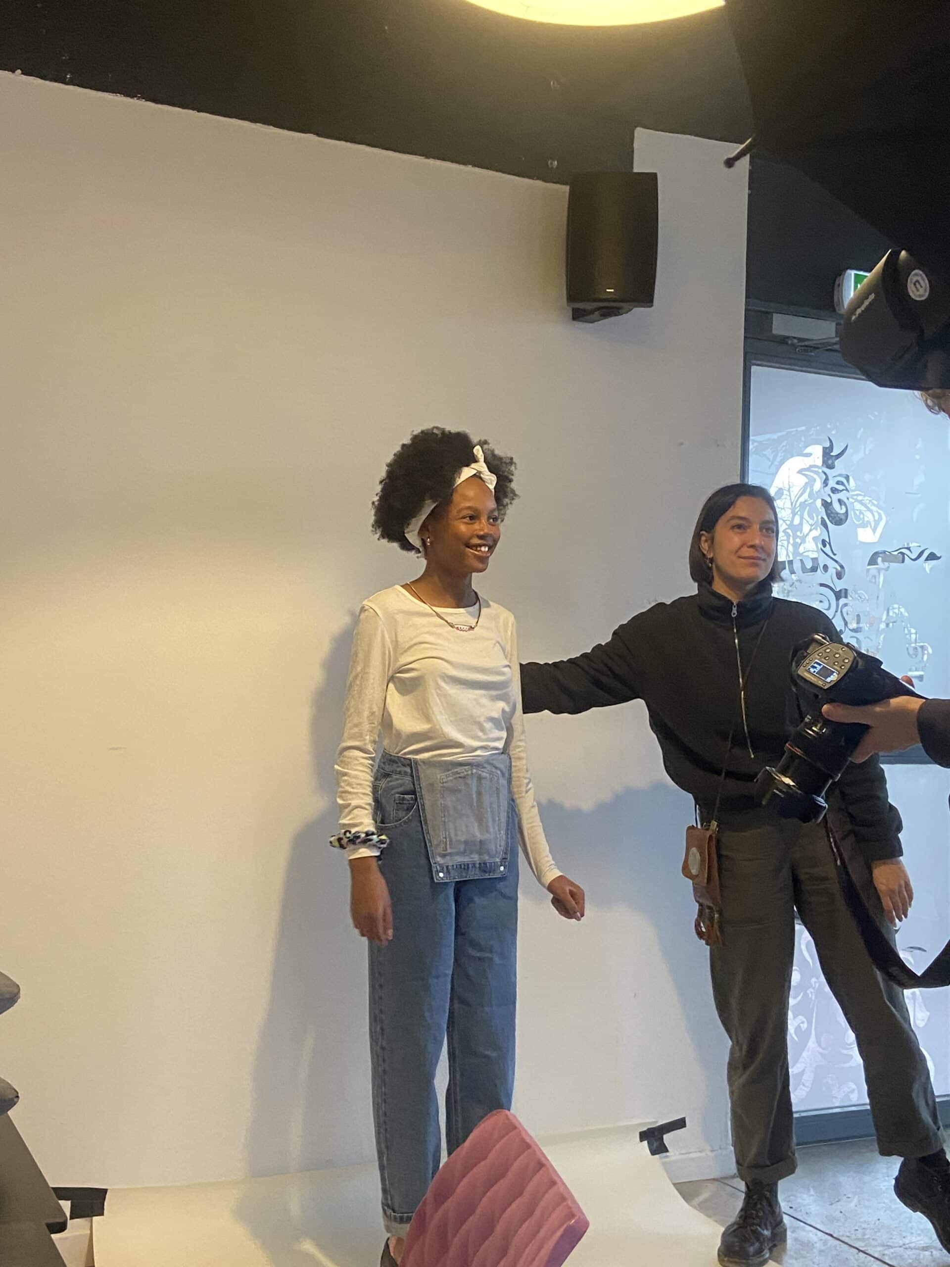 En début d’après-midi, notre mannequin, Kessy, est accueillie par l’équipe. Puis Louise, la rédactrice mode, lui montre les tenues qu’elle portera.