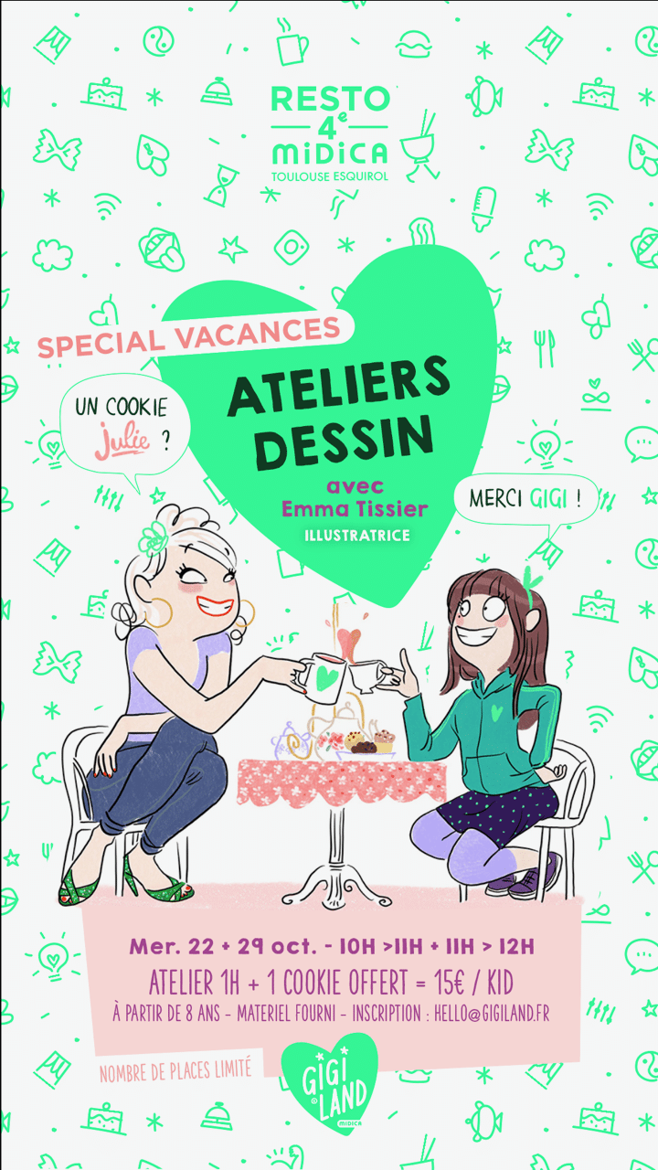 Tu es fan de Juju et tu aimerais apprendre à la dessiner ? Bonne nouvelle ! Emma Tissier, l’illustratrice de Juju, te propose des cours de dessins les deux mercredis des vacances de la Toussaint, les 22 et 29 octobre. L’occasion d’apprendre avec la meilleure !!!